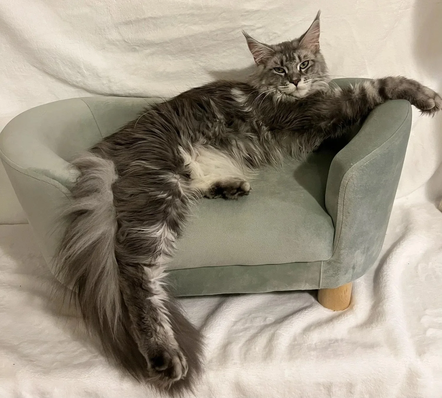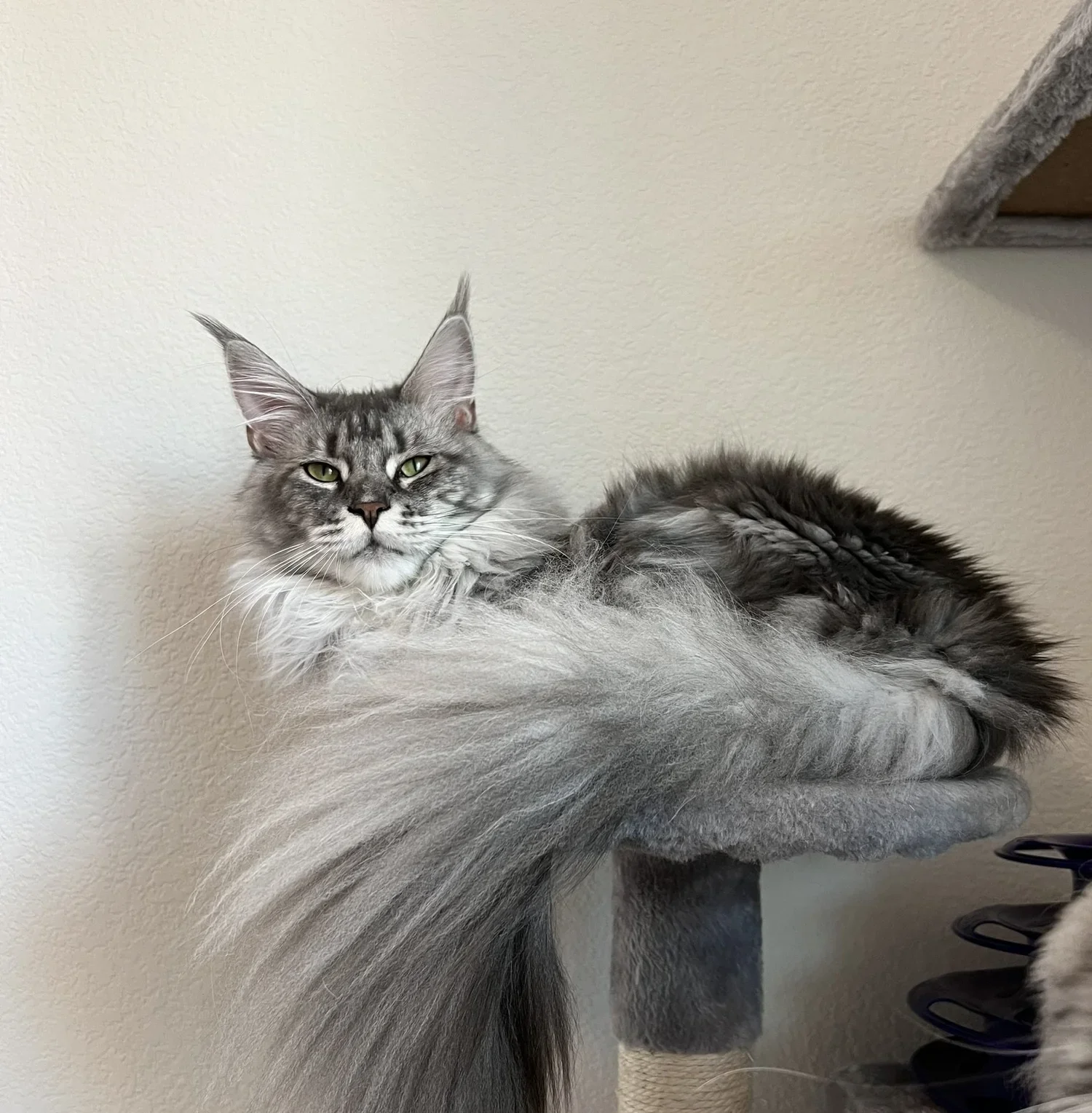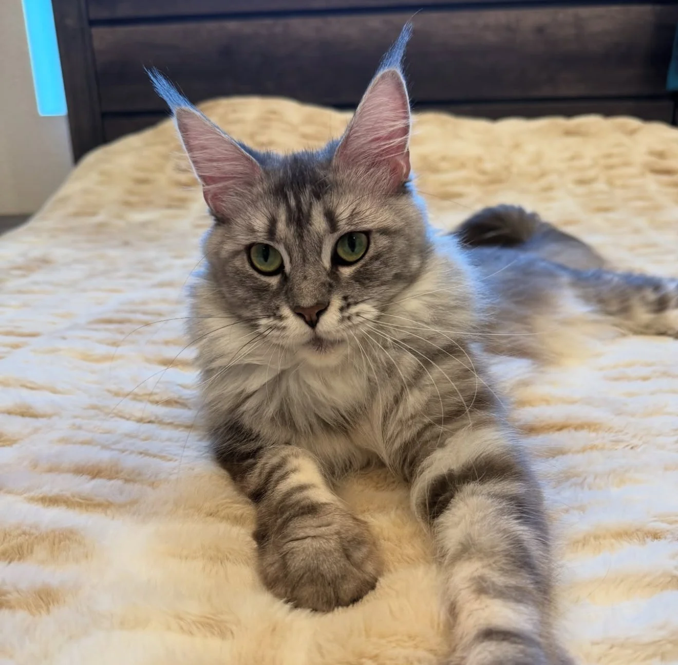 This is Boss! He had 1 litter. He is most amazing male a cattery could have. He got to sire an amazing litter for us (The Ravenhood). Unfortunately for us, Nine did not think he was as amazing as we did. It was a peeing war here with both boys. There was no chance they could get along so we made the decision for Boss to move to his forever home in Montana. He is incredibly healthy, big, and has his Champion title. We miss him so much!