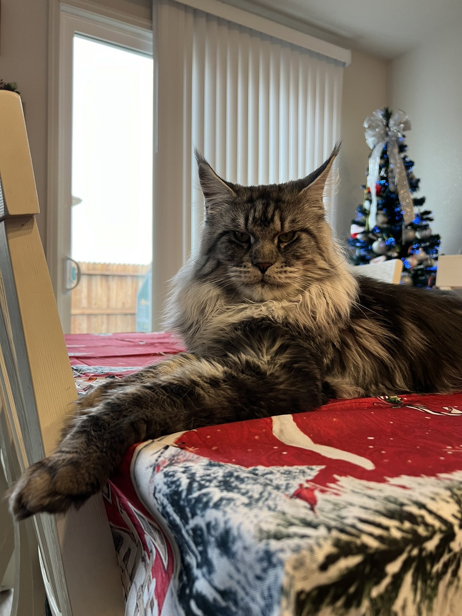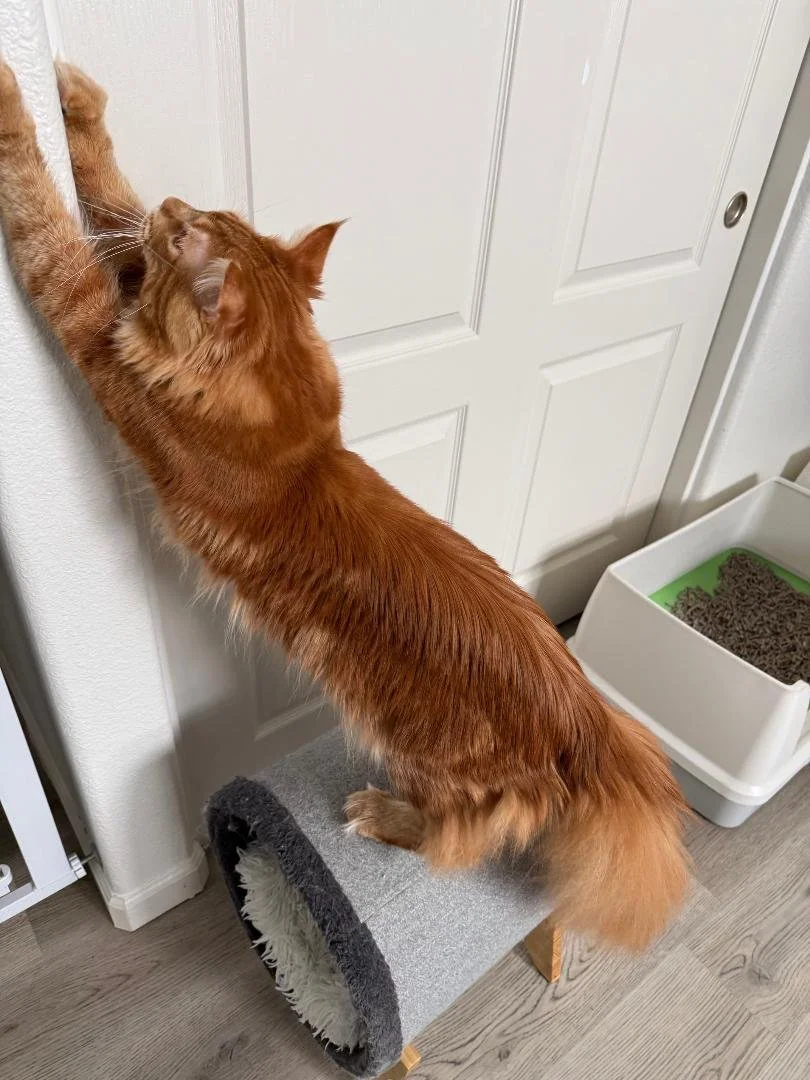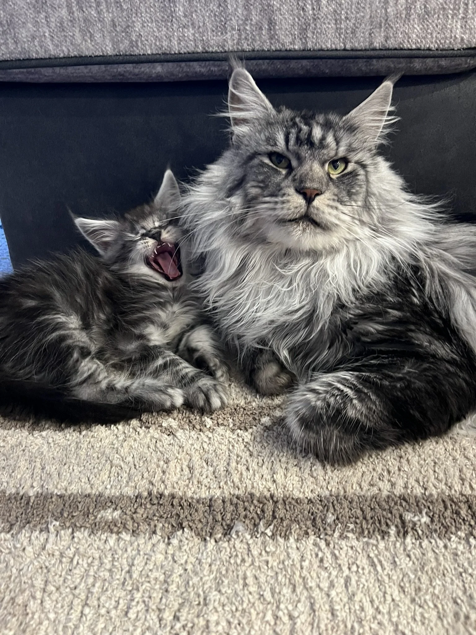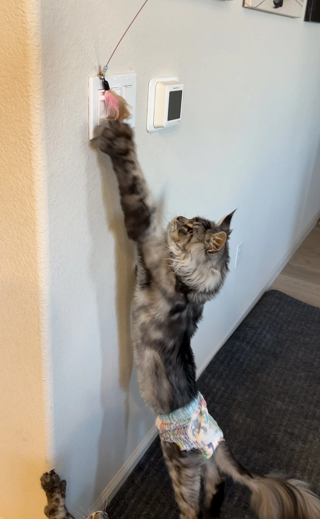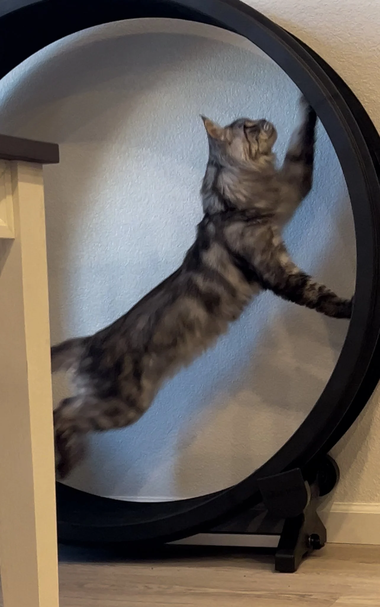 I am Nine! I am a black silver classic tabby. I am the sweetest boy you’ll ever meet. I LOVE to bonk people with my big fat head. I also love wandering down the hallway and howling as loud as I can. Some of my other favorites include peeing on walls, peeing on cat trees, peeing in water bowls, and peeing on the floor!