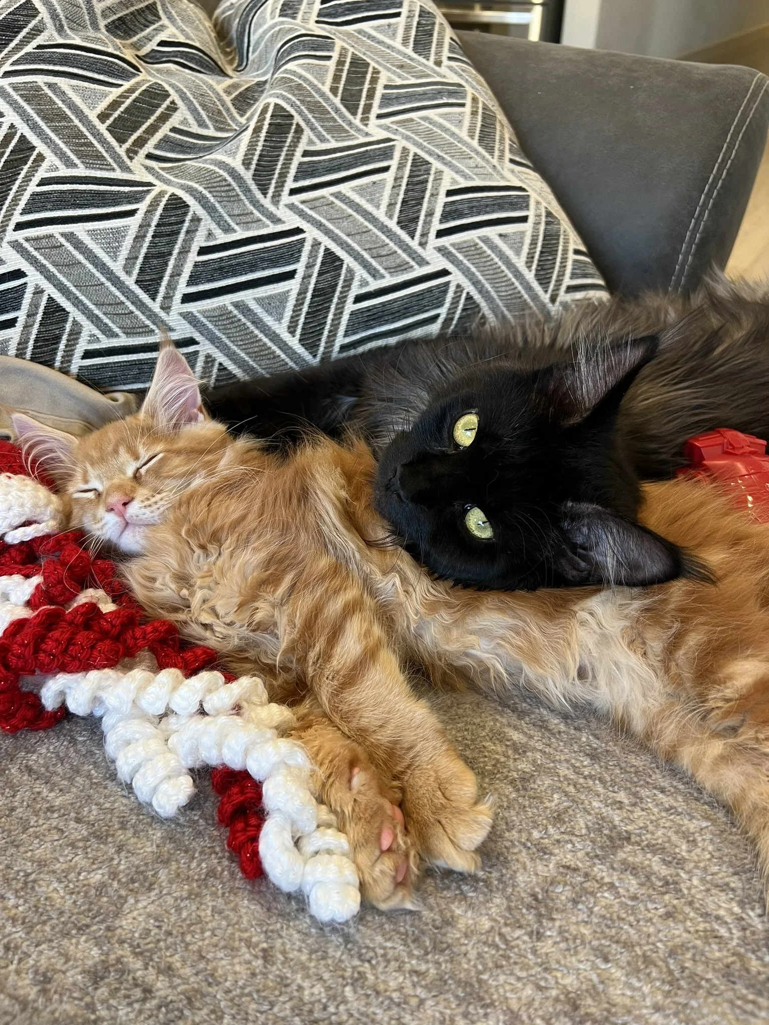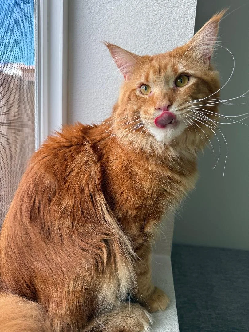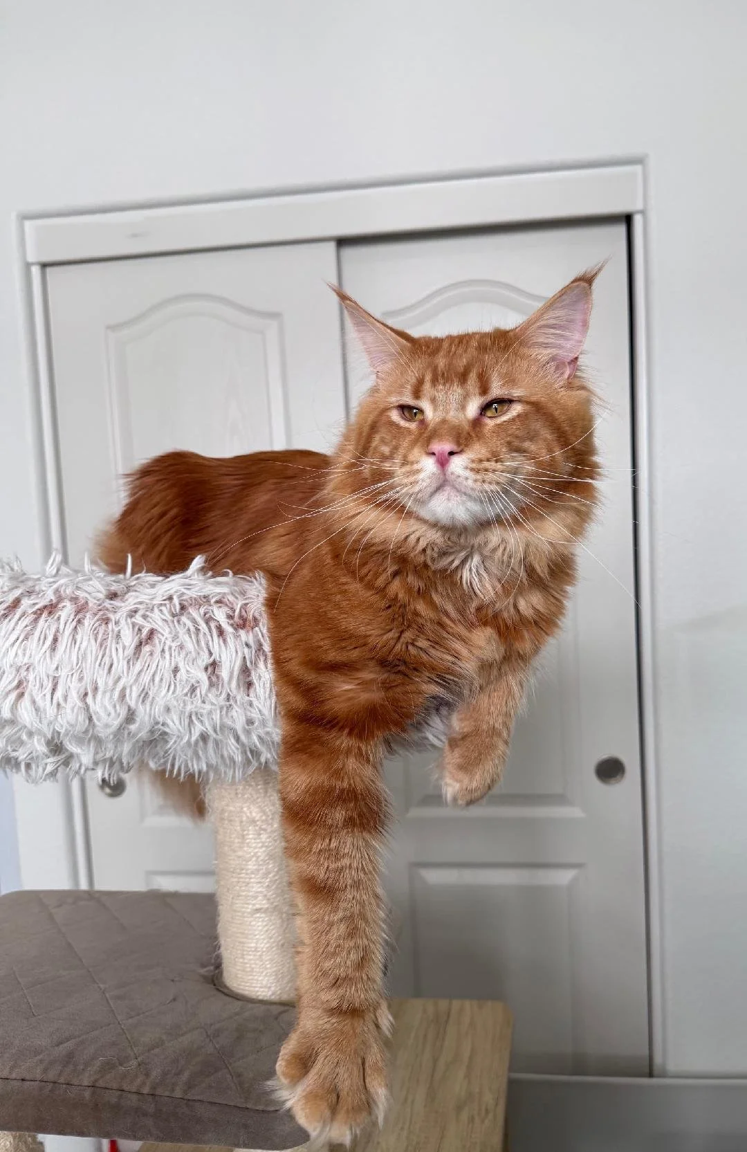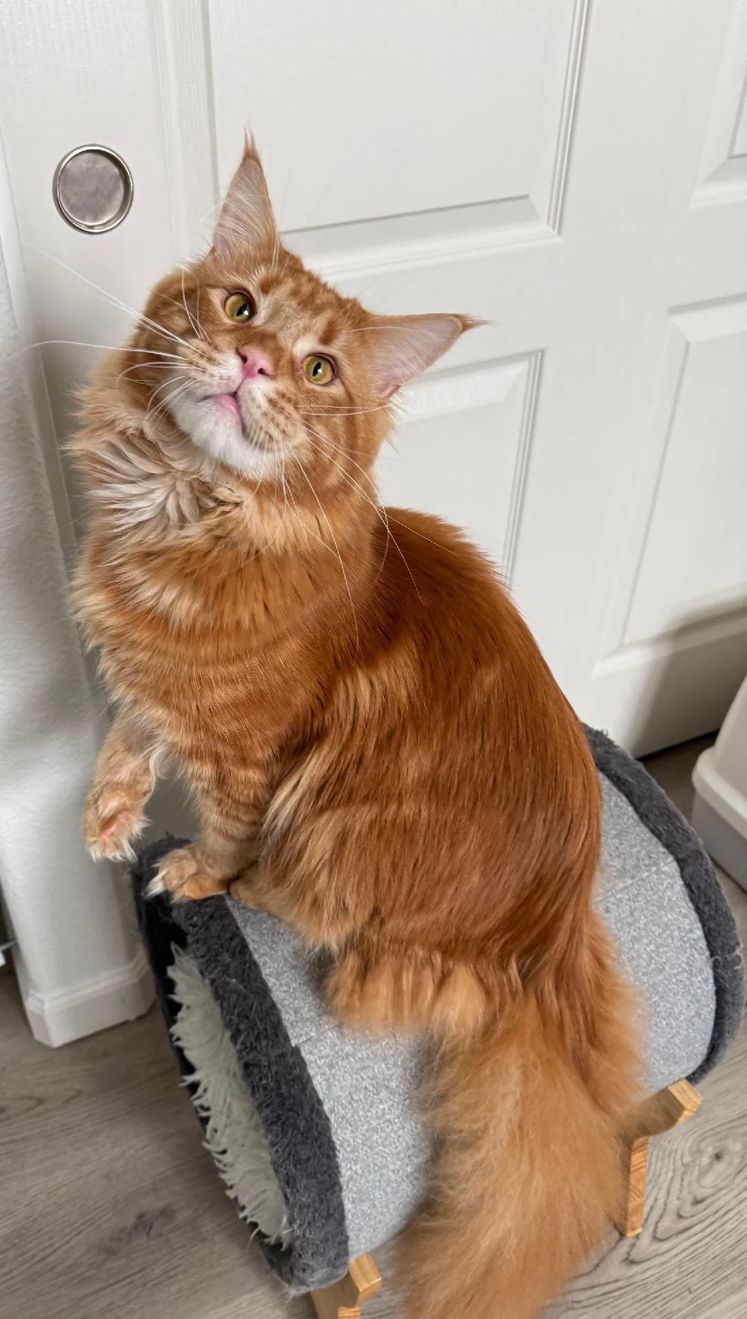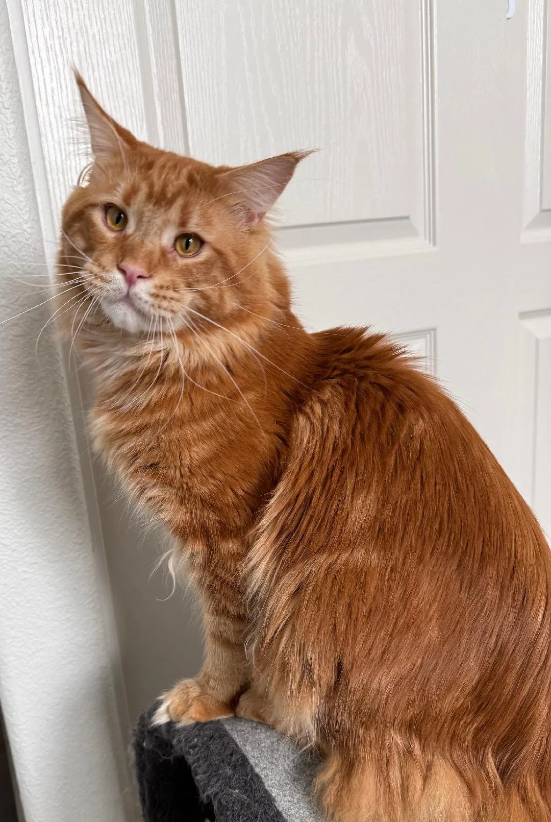 I am Dom! I am a red tabby. I was born here at the Mayhem and I have the personality of Patrick Star from SpongeBob. I am such a snuggle bug but I also love to hear myself talk. I will meow up and down the hallway all day talking to anyone who will listen. You may have seen my kitten videos on TikTok. I’m still just as cute even if I have quadrupled in size!
